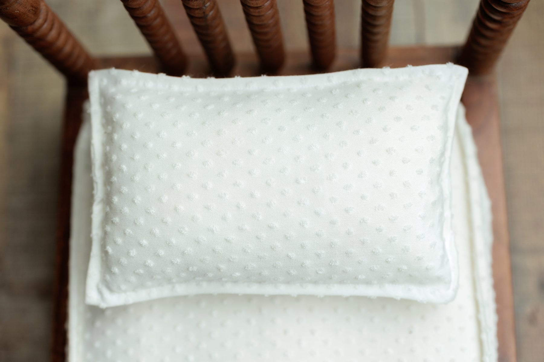 A true studio staple — the Heirloom | Ivory bedding set brings an air of soft sophistication to your setups. Crafted from textured dobby cotton with a delicate dotted pattern, this set includes a coordinating pillowcase and sheet that layer beautifully in cribs, beds, or baskets. The subtle tone-on-tone texture adds just the right amount of visual interest while keeping the focus on baby.